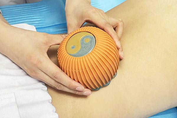 火龍罐灸的罐體根據(jù)“金補(bǔ)銀泄”原理,采用鑾金鑾銀方法,由金、銀與紫砂玄石融合燒制而成。在罐體內(nèi)點(diǎn)燃高純度艾絨制成的文柱,燃燒時(shí)利用艾的純陽之性,并結(jié)合揉、裙、按等十種手法,集推拿、刮痧、艾灸、拔罐于一